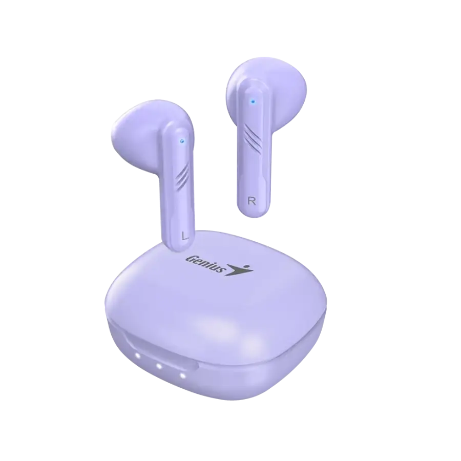 Adéntrate en una experiencia auditiva vibrante y sin ataduras con los **Audífonos Genius HS-M905BT en un atractivo color Lila**. Diseñados para combinar estilo, comodidad y la última tecnología, estos auriculares estéreo Bluetooth (TWS) son perfectos para amantes de la música, profesionales en movimiento y cualquiera que busque un audio de alta calidad con la máxima libertad inalámbrica. Disfruta de una conexión estable, un sonido inmersivo y un control intuitivo al alcance de tus dedos.