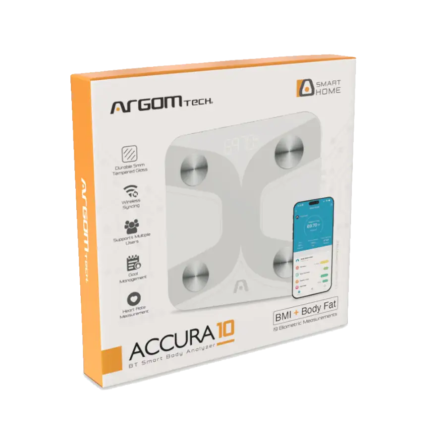 Balanza Argom Accura 10BT Medición Biométrica LED Digital Blanco