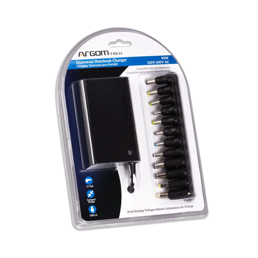 Cargador Argom Delgado Para Portatil USB 90W Sensor Automatico 12 Puntas