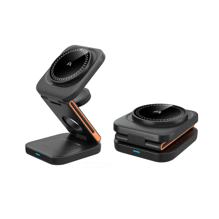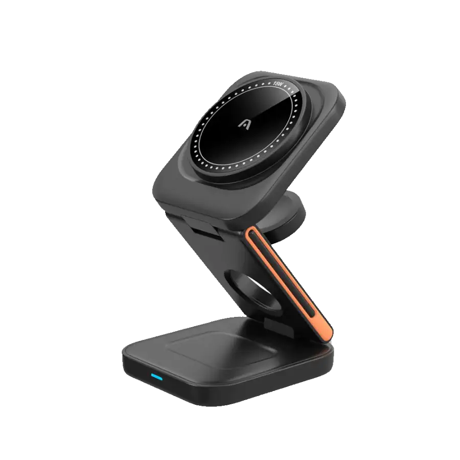 Este cargador resuelve el problema de depender de múltiples cables y adaptadores para tu smartphone, reloj y auriculares. Al integrar tres zonas de carga en una sola estructura inteligente, minimizas los puntos de falla y maximizas tu retorno de inversión en hardware. Su potente conexión magnética garantiza que tus dispositivos se mantengan alineados y seguros, evitando interrupciones accidentales en la transferencia de energía y protegiendo la salud de tus baterías con una eficiencia del ≥75%.