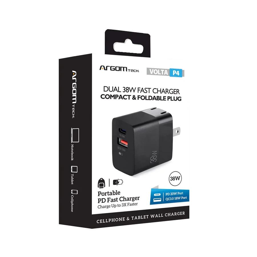 Cargador Argom Rápido de Pared Volta P4 USB-C 38W Pared Certificación ETL Negro