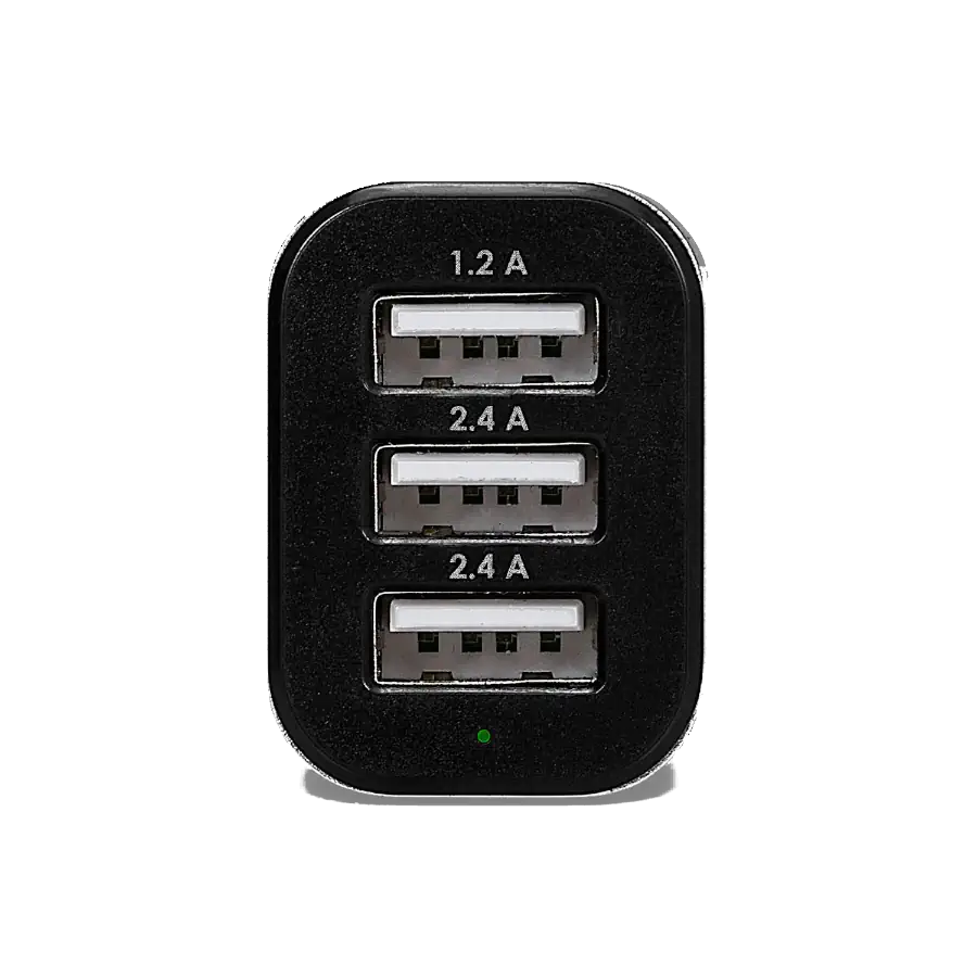 No elijas qué dispositivo priorizar. Con sus tres puertos de salida, puedes alimentar simultáneamente smartphones y tabletas, manteniendo un orden impecable en tu cabina gracias a sus dimensiones optimizadas de 6,5 x 3,5 x 2,5 cm.