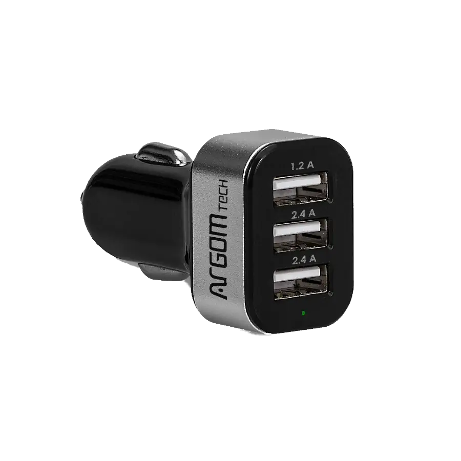 Cargador Argom Rapido Para Auto 3 USB 6A-5V LED Encendido Negro
