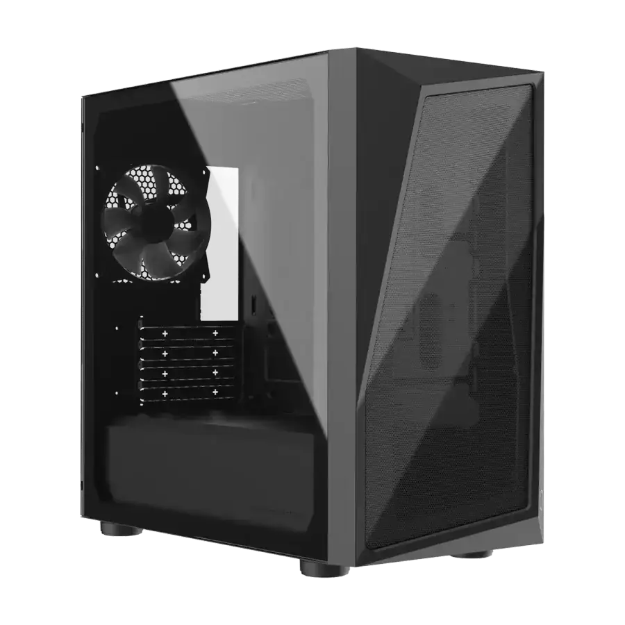 Disfruta de un diseño elegante en color negro con detalles cuidadosamente pensados. Los dos ventiladores frontales CF120 ARGB preinstalados no solo proporcionan un excelente flujo de aire, sino que también iluminan tu setup con colores vibrantes y personalizables a través del hub ARGB incluido.