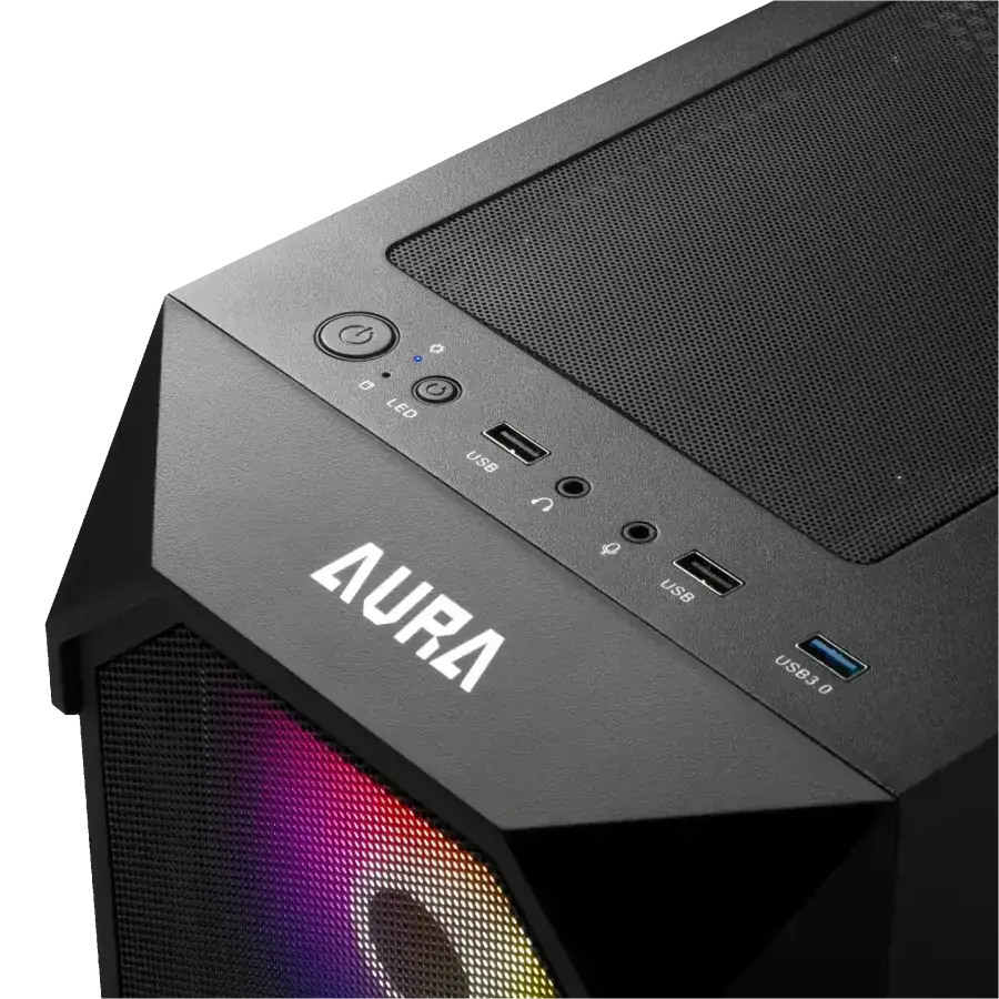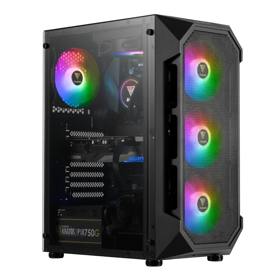 El Gamdias Aura GC1 Negro es la opción ideal para los gamers que buscan un gabinete semitorre asequible con un excelente flujo de aire, iluminación ARGB vibrante y un diseño elegante con ventana de vidrio templado.