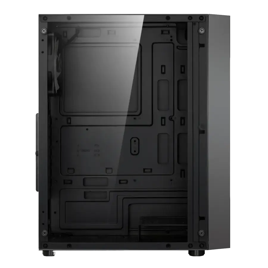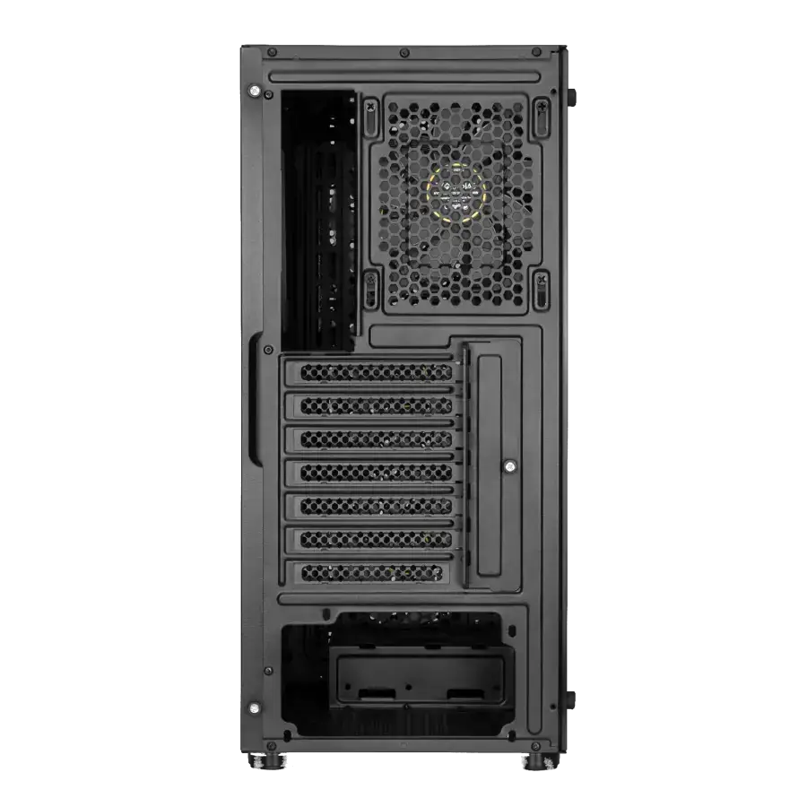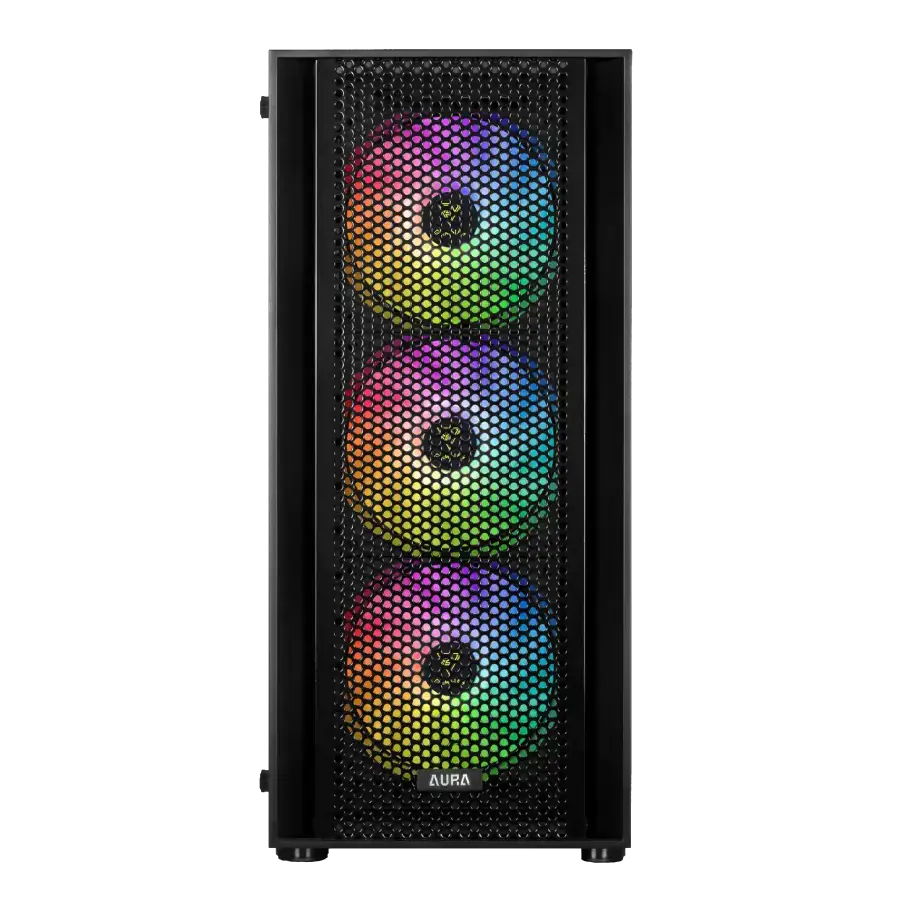 El Aura GC2 viene equipado con cuatro ventiladores ARGB de 120 mm integrados, tres en la parte frontal y uno en la parte trasera. Estos ventiladores no solo proporcionan una excelente refrigeración para mantener tu sistema a temperaturas óptimas, sino que también ofrecen un espectáculo de luces personalizable que se exhibe a través del panel frontal perforado y el panel lateral panorámico de vidrio templado.