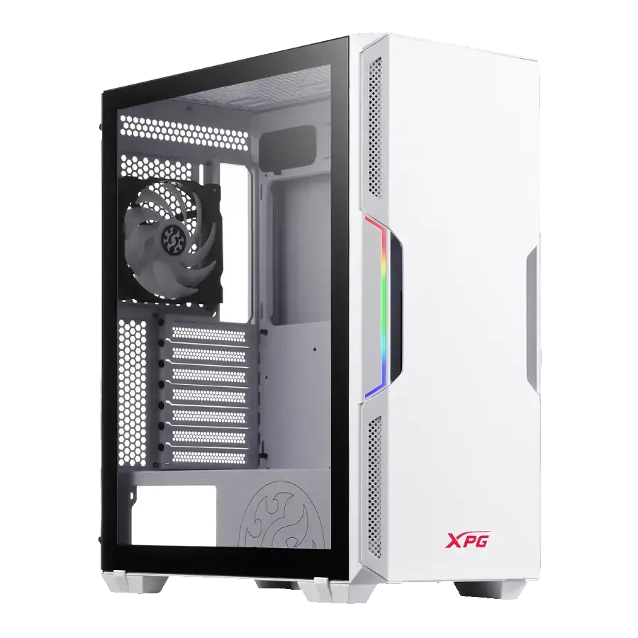 XPG Starker Blanco: Compacto, Potente y con Estilo ARGB. Torre media ATX blanca con diseño frontal elegante y tiras ARGB. Innovador filtro de polvo extraíble, soporte VGA vertical/horizontal y excelente flujo de aire. 2 x USB 3.