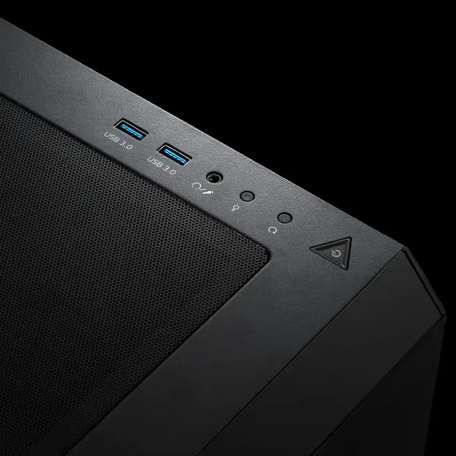 El XPG Starker Negro redefine la eficiencia en un chasis de media torre. Su diseño frontal sólido y estilizado, desarrollado bajo la filosofía XPG: Exoskeleton Design Language, incorpora dos llamativas tiras de iluminación ARGB que resaltan su ADN gaming. A pesar de su tamaño compacto, ofrece una funcionalidad completa para construcciones ATX.
