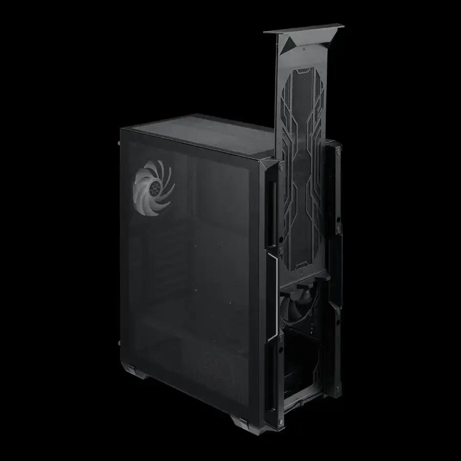 Muestra tu tarjeta gráfica con orgullo. El diseño de soporte VGA reemplazable te permite instalar tu GPU tanto vertical como horizontalmente, incluso dentro de las dimensiones compactas del chasis, permitiendo lucir sus efectos de iluminación.