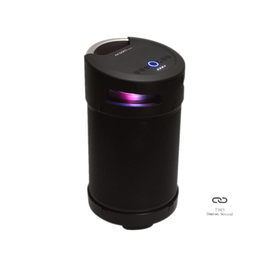 ¿Quieres más potencia? Nuestra exclusiva tecnología True Wireless Sound (TWS) te permite emparejar dos altavoces Ambience 360 de forma inalámbrica. Disfruta de un verdadero sonido estéreo y una asombrosa potencia combinada de 120W, transformando cualquier espacio en un festival de sonido. Con controles multimedia de fácil acceso y un asa resistente integrada, llevar y controlar tu música es más fácil que nunca.