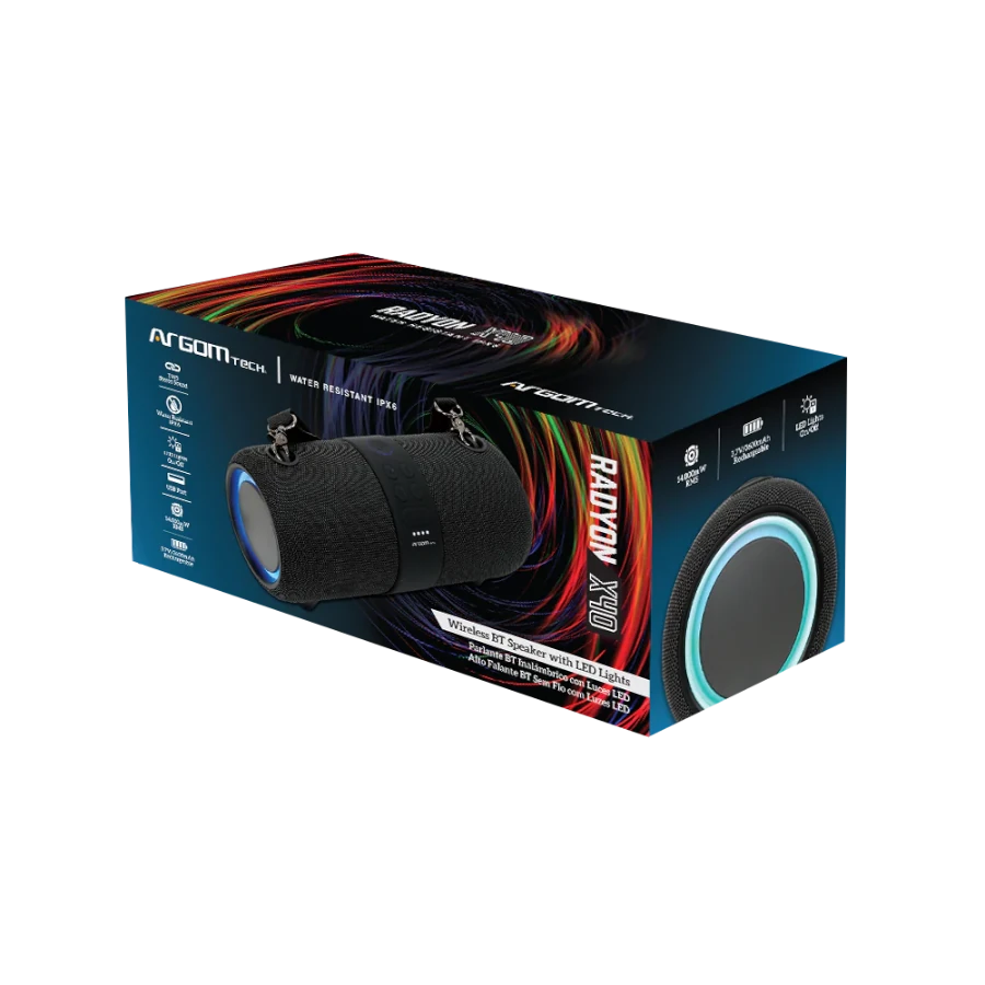 Cornetas Argom Radyon X40 Premium Negro Bluetooth USB 3.5MM 14W Inalámbrico Luces LED Incluye Correa