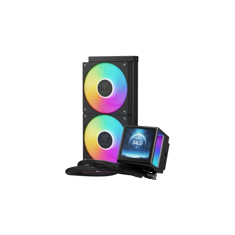 Domina el rendimiento y la estética de tu PC con la refrigeración líquida Gamdias CHIONE P5-240 . Incorpora una pantalla LCD IPS de 3.4″ personalizable para estadísticas en tiempo real e imágenes animadas, transformando tu setup.