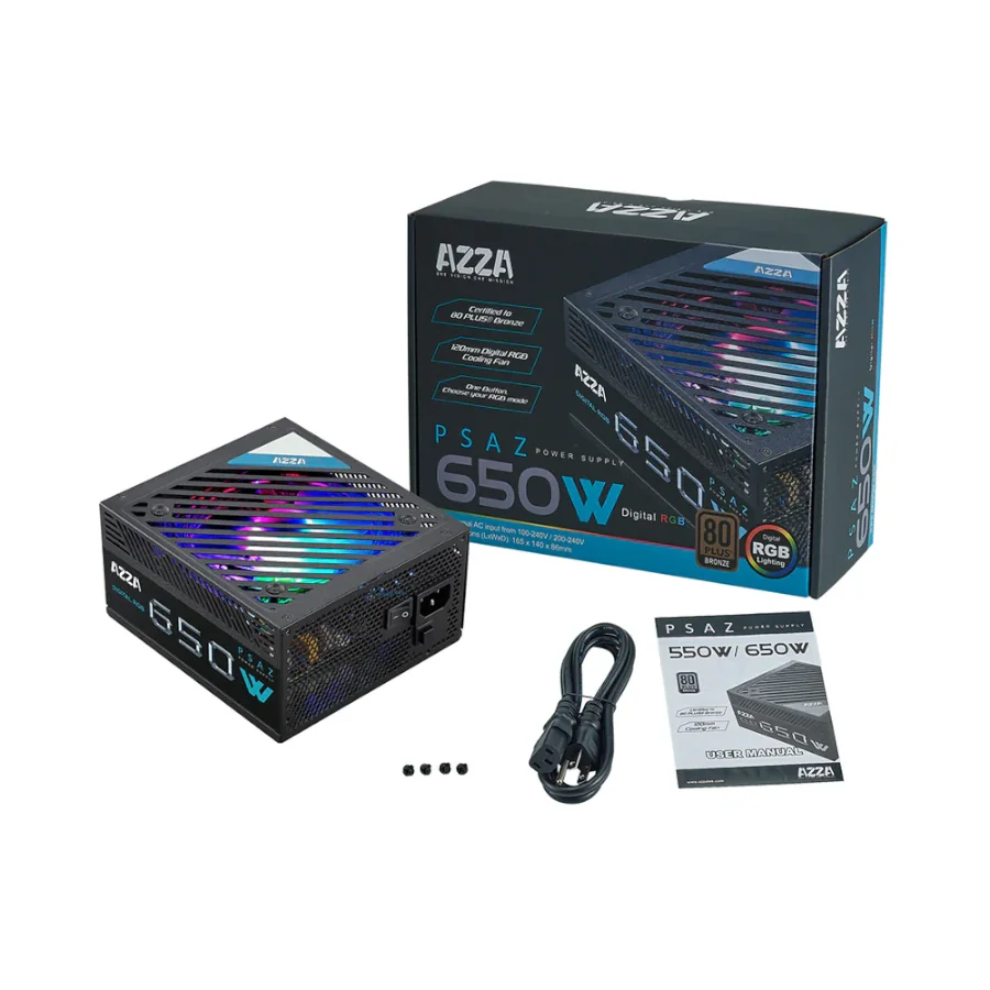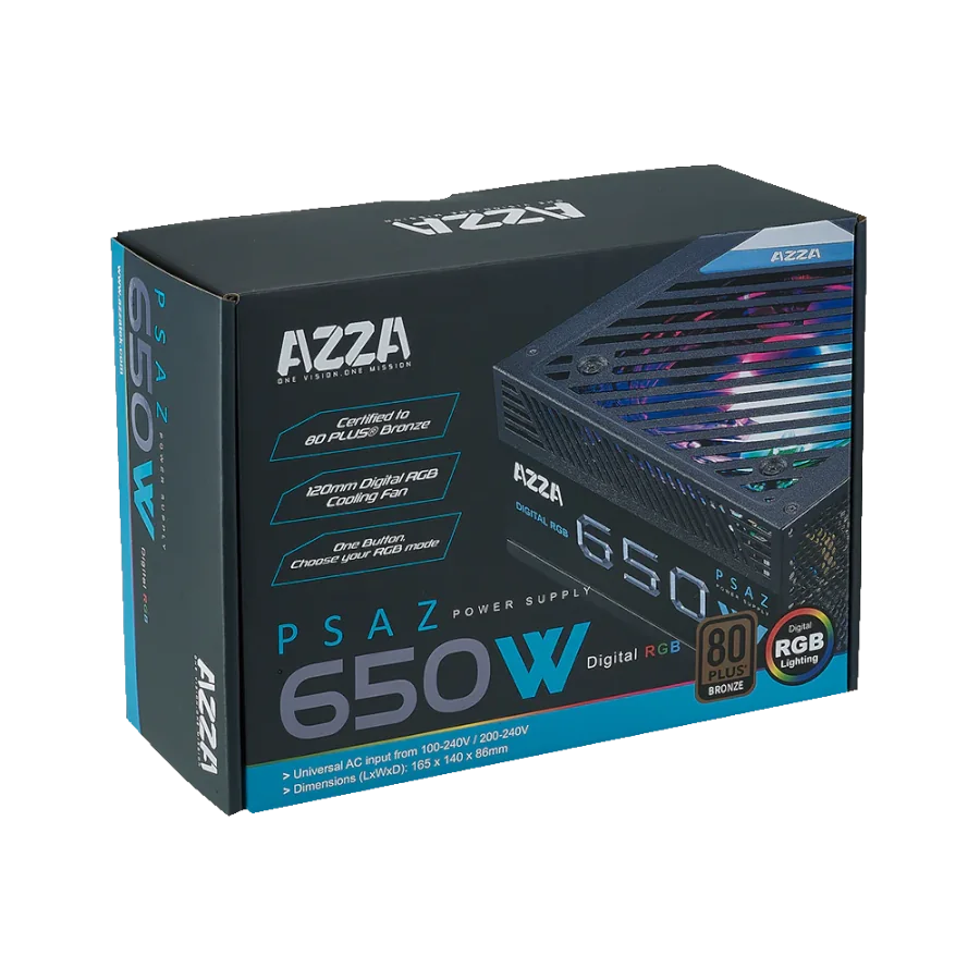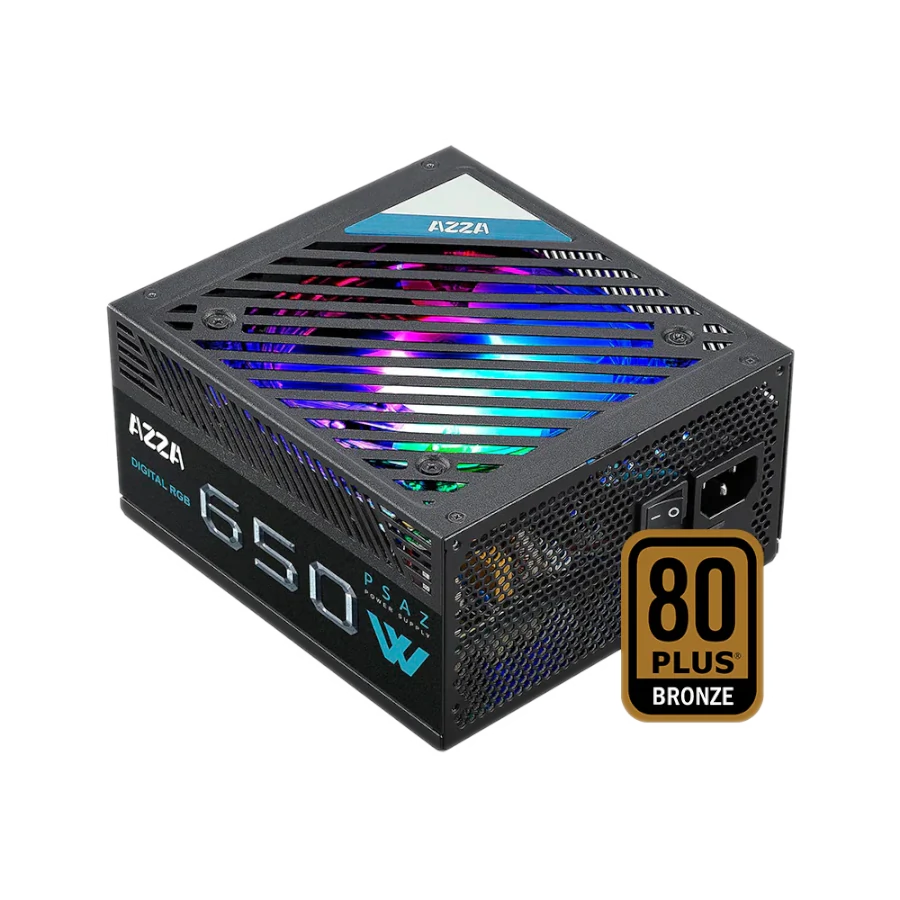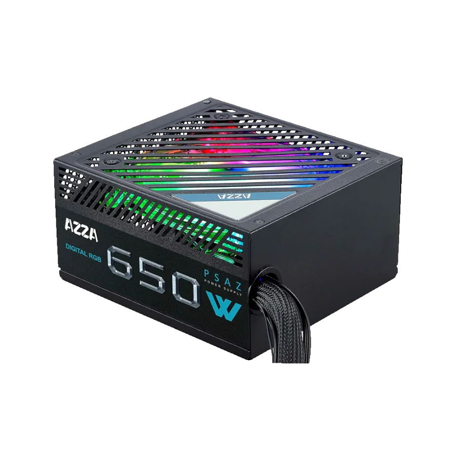 Fuente de Poder Azza Gaming 650W ARGB ATX 12V 80 Plus Bronze 100-240V LED Negro