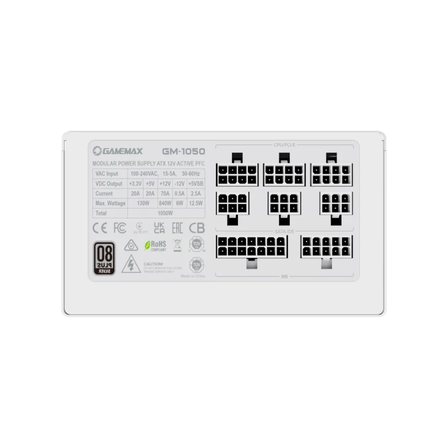 Fuente de Poder GameMax GM-1050 M 1050W 80+ Silver Modular Blanco: Rendimiento y Estilo en un Solo Paquete