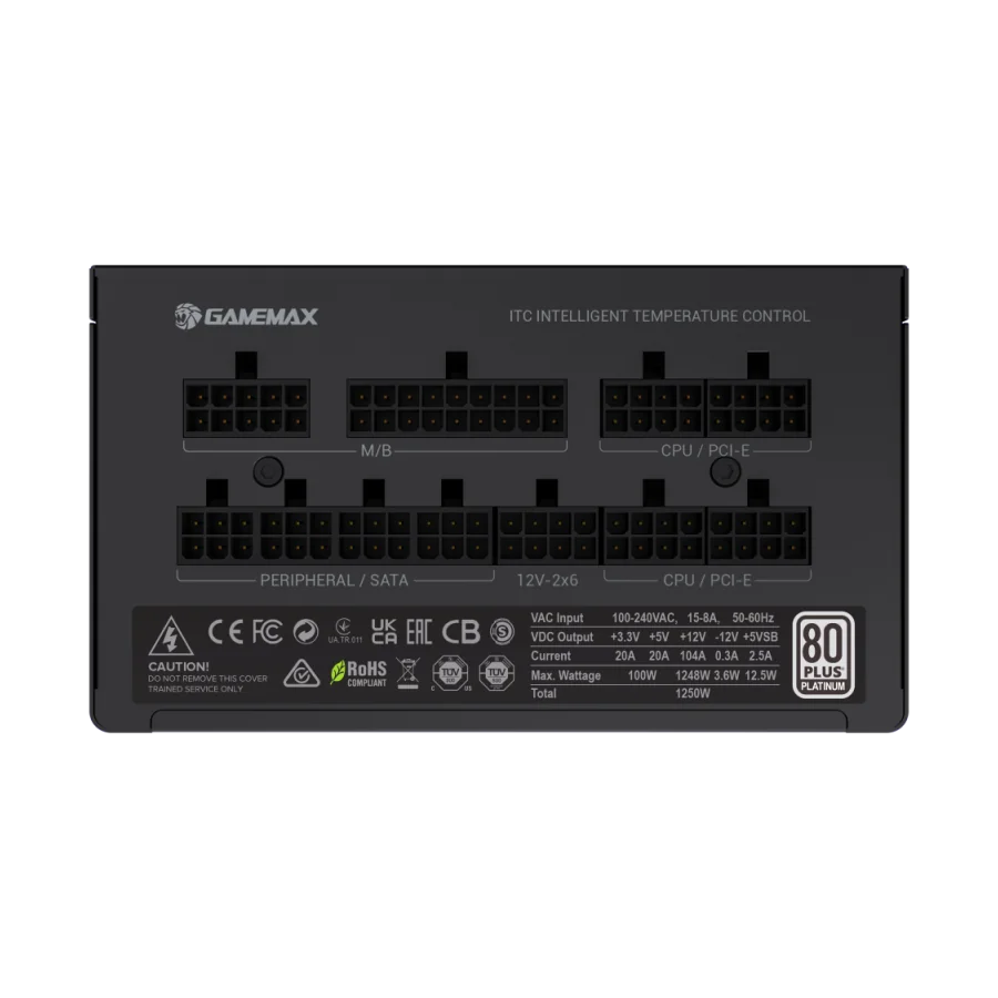 Fuente de Poder Gamemax Gaming 1250W GX-1250 ATX 12V Certificación 80 Plus Platinum Negro