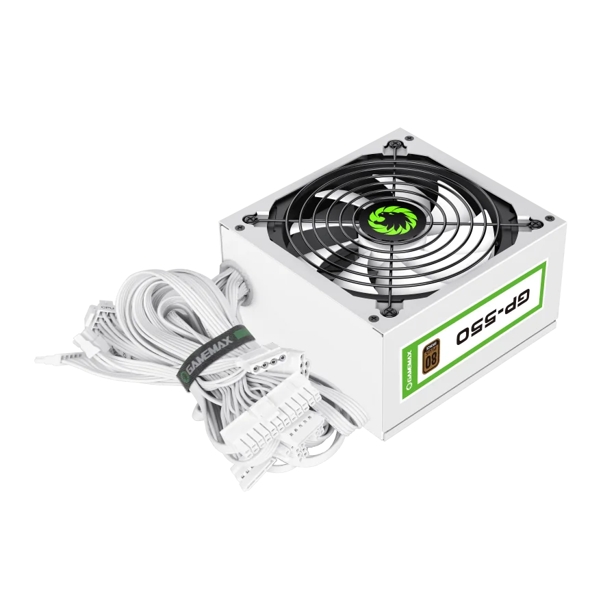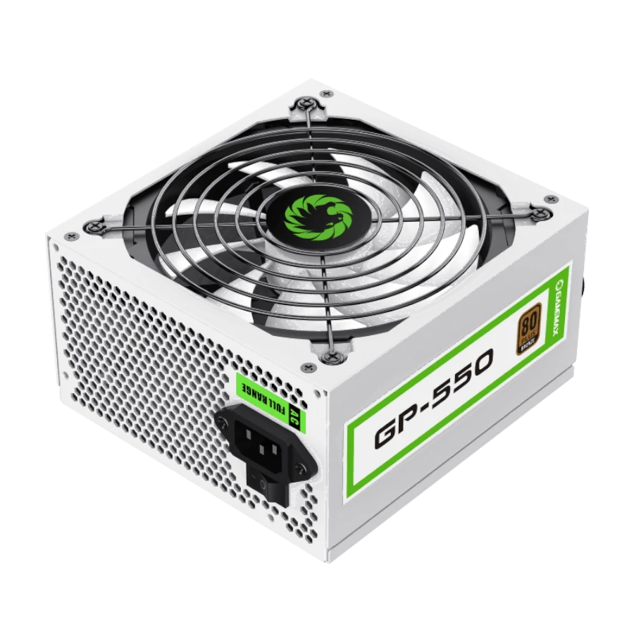 Fuente de Poder Gamemax Gaming 550W GP-550 Bronze ATX 12V 5 Sata Certificado de Seguridad Blanco