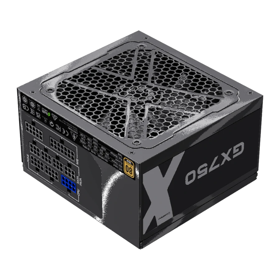 Disfruta de un ambiente de trabajo o juego tranquilo gracias a su **ventilador FDB (Fluid Dynamic Bearing) de bajo ruido**, que mantiene la temperatura bajo control incluso durante cargas pesadas. La GX-750 está construida con **condensadores totalmente sólidos**, lo que garantiza una **mayor durabilidad** y una salida de energía estable a lo largo del tiempo, brindándote confianza en cada uso.