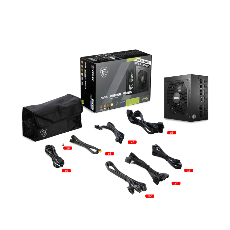 Fuente de Poder MSI Gaming 850W Mag A850GL ATX PFC 100-240V 80 PLUS Gold Sata Full Modular Negro