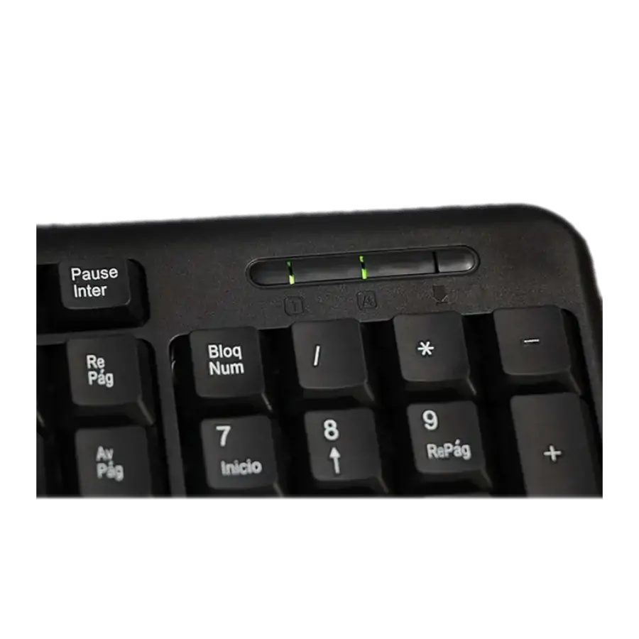 Este combo alámbrico de teclado y mouse ofrece la calidad y durabilidad que buscas para tus tareas diarias. Con un mouse óptico de 800 DPI de alta precisión y un teclado en español, garantiza un rendimiento fiable y sin complicaciones. Su diseño delgado y elegante en color negro se adapta a cualquier espacio, listo para usar al instante.