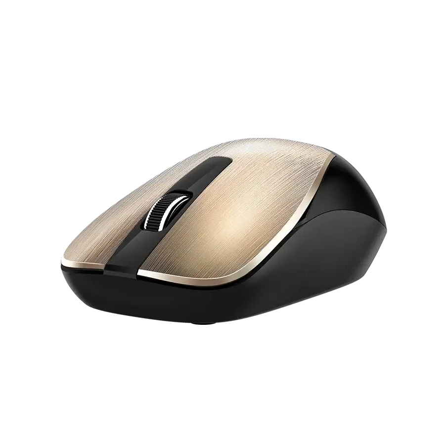 Experimenta la libertad con este mouse óptico inalámbrico de 2.4GHz. Su diseño ergonómico color oro se adapta a cualquier mano y el sensor Blue Eye te permite usarlo en casi cualquier superficie. ¡Simplemente conéctalo y disfruta de su practicidad instantánea!