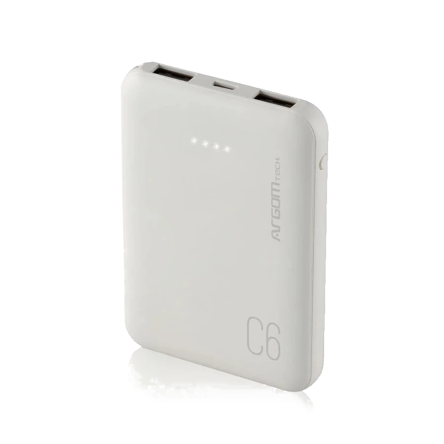 Power Bank Argom C6 6000MAH Ultracompacto USB Indicadores LED Blanco