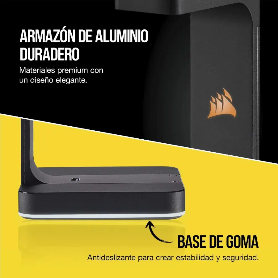 El soporte para audífonos Corsair ST100 RGB es mucho más que un simple accesorio. Está diseñado para elevar la estética y la funcionalidad de tu espacio de juego o trabajo. Construido con una estructura de aluminio premium y una base de goma antideslizante, este soporte no solo exhibirá tus audífonos con elegancia, sino que también mejorará tu experiencia de audio y conectividad.