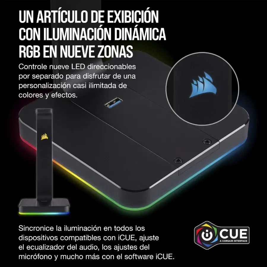 Soporte para Audifonos Corsair ST100 RGB 3.5mm USB